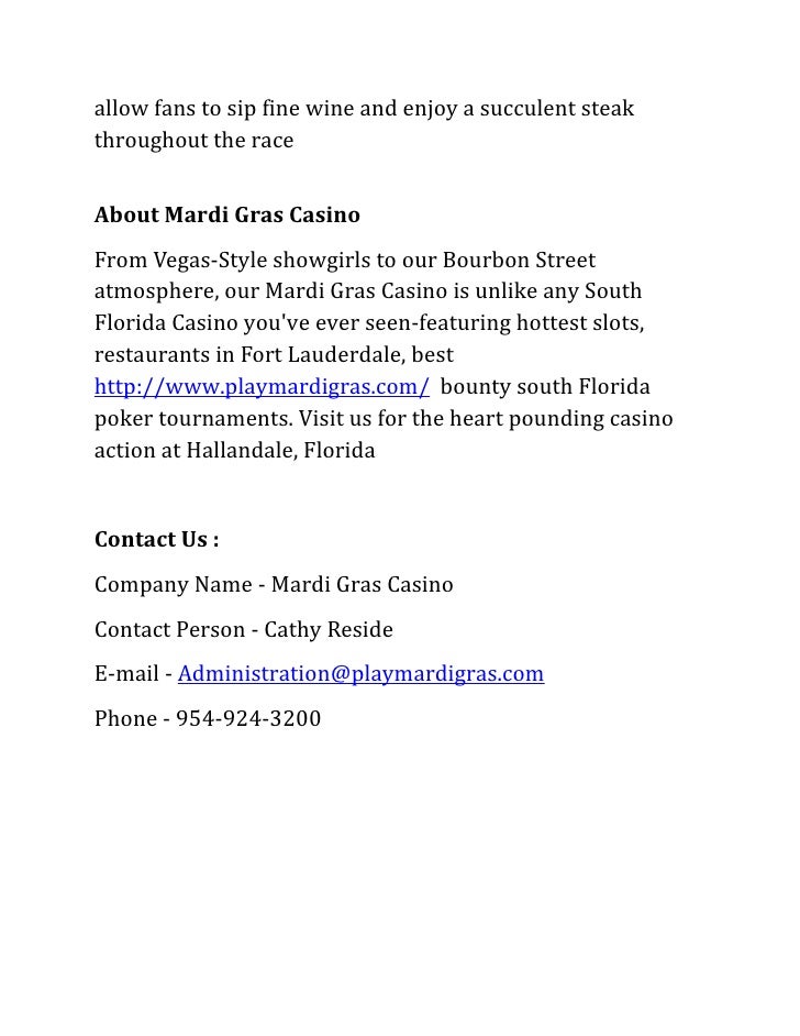 - ^'Florida Poker Tournaments Mardi Gras Casino'. Mardi Gras Casino. Archived from the original on 2016-05-26. Retrieved 2016-06-17.